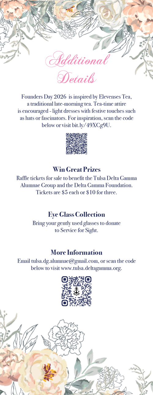 Welcome to a sisterhood that transcends time and enriches lives - the Tulsa Delta Gamma Alumnae Chapter! Here, we remember that Delta Gamma is more than just a collegiate experience; it is a lifetime commitment, a source of unwavering support, and a doorway to endless opportunities. Our focus revolves around the pillars of sisterhood, fostering interactions between collegiate and alumnae members, and making a positive impact in our community.